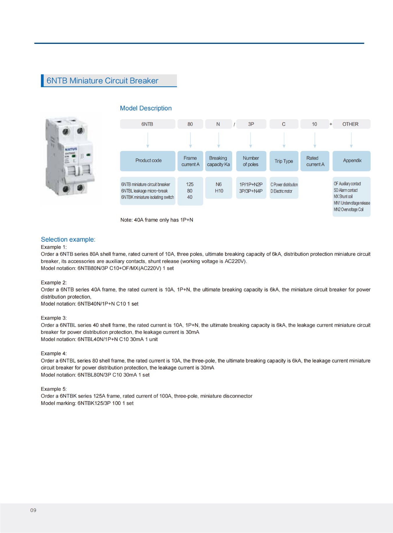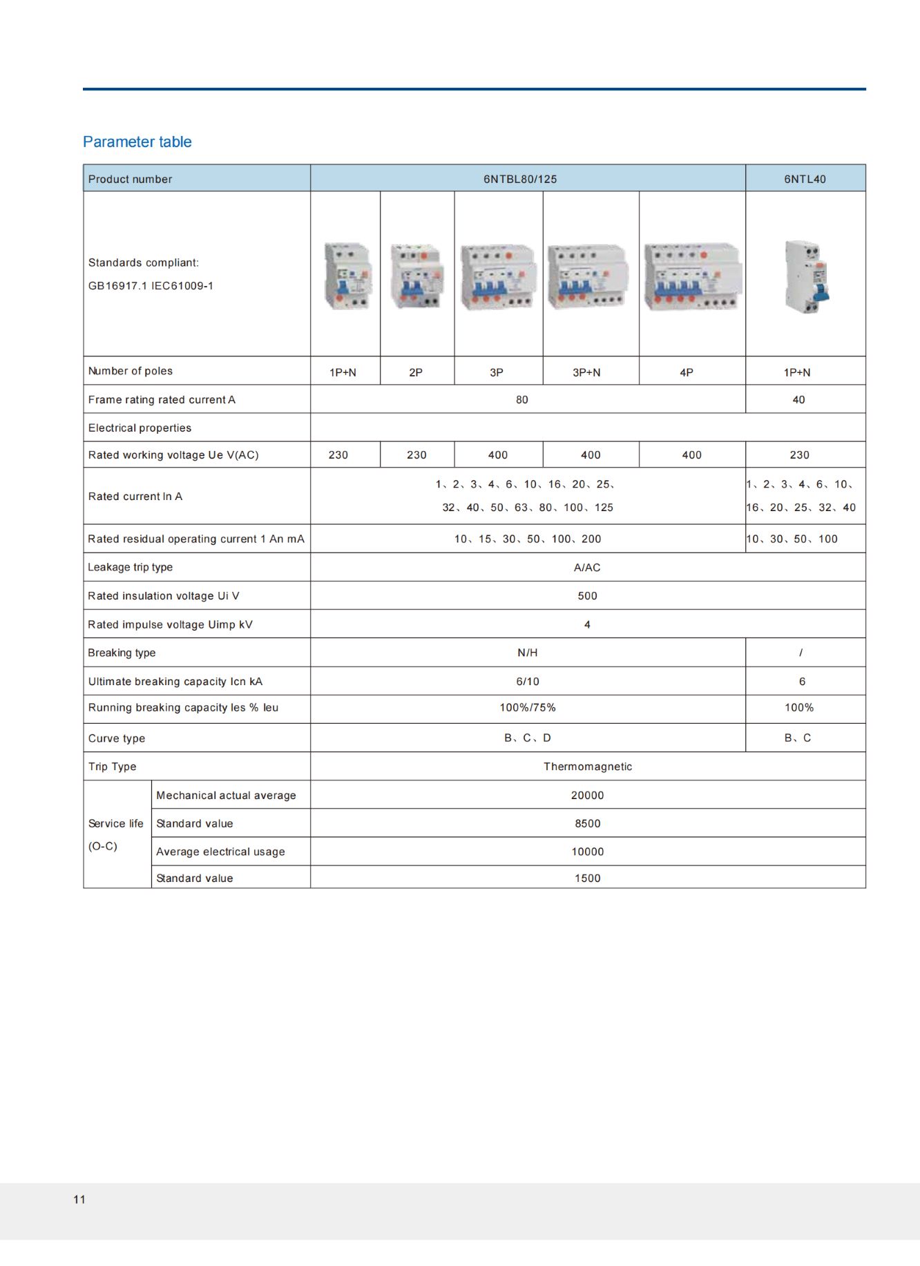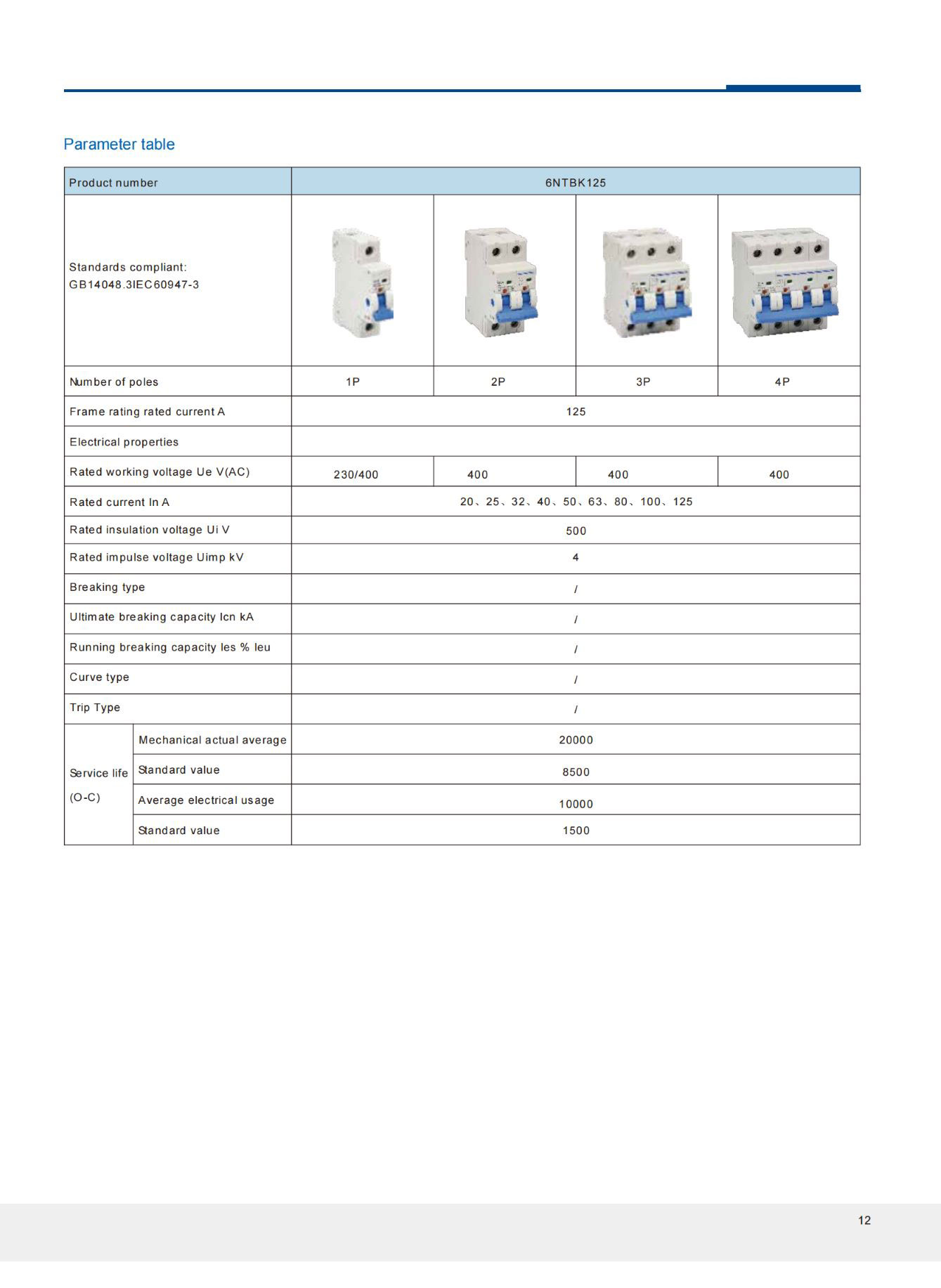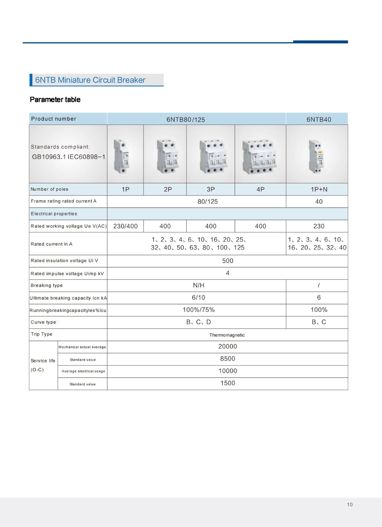 Miniature circuit breakers are suitable for isolation, overload, short circuit and leakage protection in AC 50 / 60Hz, rated voltage 230 / 400V, and current to 125A distribution lines.